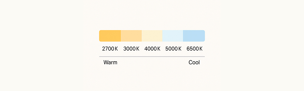 - Kelvin (farvetemperatur): Måles i tal som f.eks. 2700K, som svarer til varmt hvidt lys – perfekt til hyggelig stemning. Højere Kelvin-tal (4000K og op) giver et koldere og mere energisk lys, egnet til kontor eller arbejdsplads.