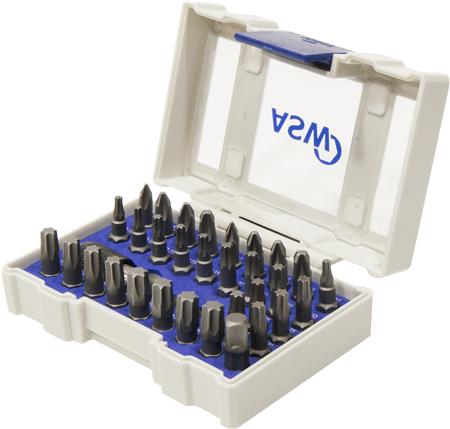 Bits af høj kvalitet i S2 Stål, sandblæst og matt. Sættet indeholder 30 bits, 1 adapter 1/4" til 1/4" firkant og 1 bitsholder med magnet og lynkobling - 60MM. 1xPH1 ; 2xPH2 ; 1xPH3 1xPZ1 ; 2xPZ2 ; 1xPZ3 3x TORX 10 ; 3... Se mere