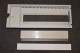 Afdækning for DIN-skinnemateriel i Domino. 1 søjle bred og 1 modul høj. For 1 stribe. Incl. blændplade og skilteark.
