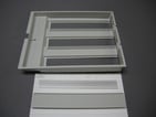 Afdækning for DIN-skinnemateriel i Domino. 1 søjle bred og 2 modul høj. For 3 stribe. Incl. blændplade og skilteark.