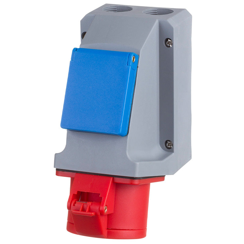 16A 400V CEE udtag med indbygget 230V DK udtag. Udslagsblanket for 4 x M25 forskrugninger. Farve: grå.