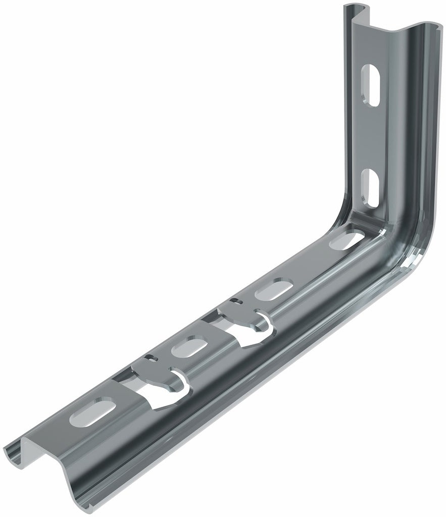 Vægophæng for elforzinkede gitterbakker. Gitterbakken låses mod vægophænget med klemmer som bøjes ned. Kan afsluttes med endestykke Best.Nr. 11 337 90.