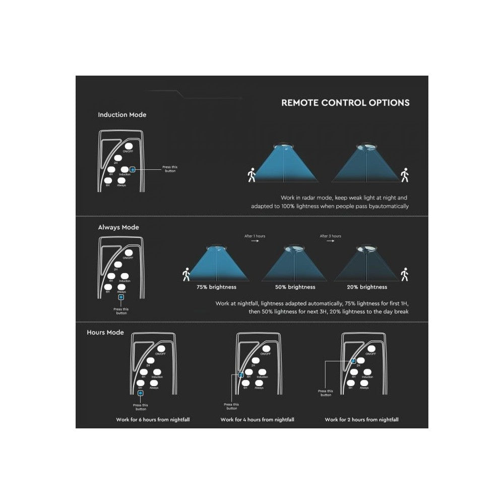 V-Tac 7.5W Solcelle Havelampe LED - Sort, Ø42 cm, med solcelle, sensor og IP65
