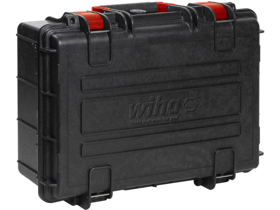 Wiha Industri-elektriker L-kuffert, incl. 62 dele, giver dig en kompakt og sikker LAUS-løsning. Værktøjet er sikkert opbevaret i den robuste L-kuffert, og du har mulighed for at låse den med hængelåse (er ikke indehol... Se mere