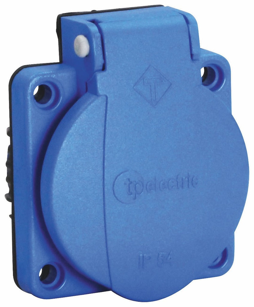 Vægudtag til indbygning med selvlukkende låg af slagfast termoplast. Godkendt iht. DS-60884-2-D1:2017. 16A, 230V.