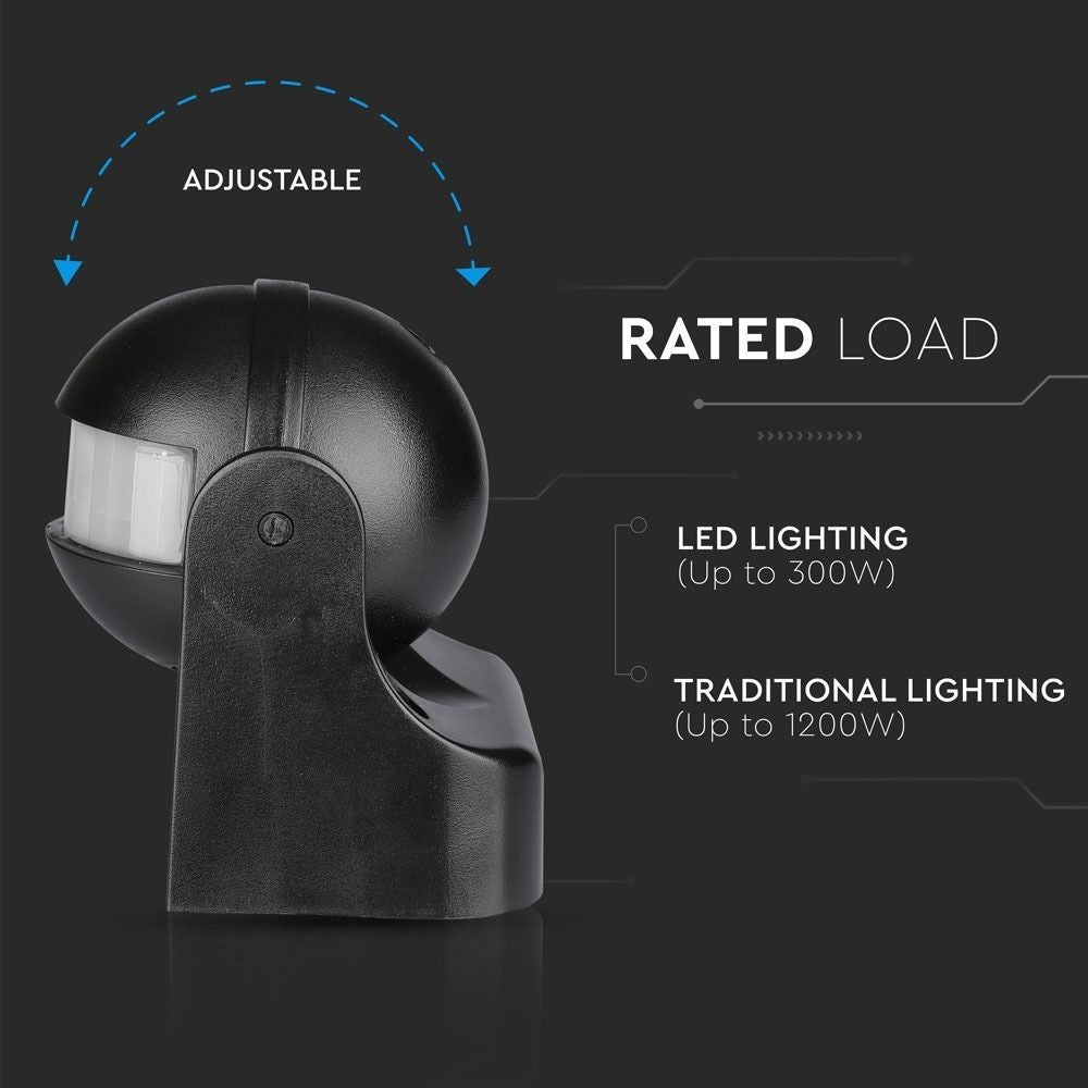 V-Tac bevægelsessensor - sort, LED-venlig, udendørs PIR infrarød bevægelsessensor med IP44, 230V input
