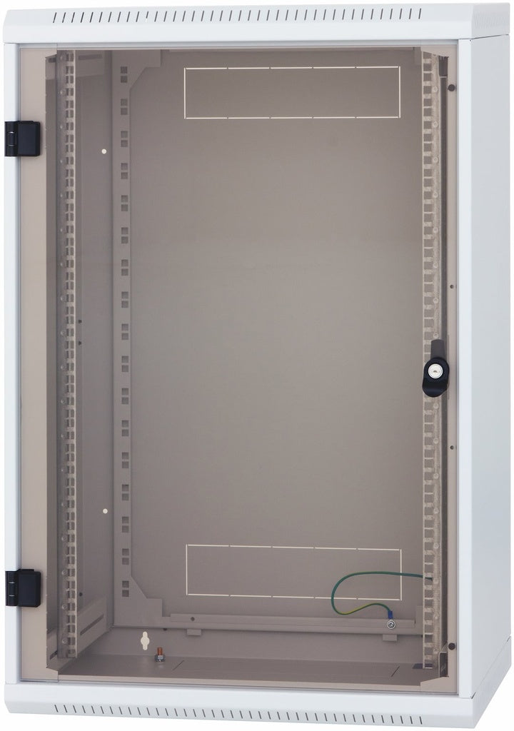 Ventilationshuller i over og underdelen gør at luften kan cirkulere frit i skabet. To justerbare profilskinner og to faste profilskinner i skabets bagkant. Døren har ramme af stålplade og røgfarvet sikkerhedsglas. Den... Se mere