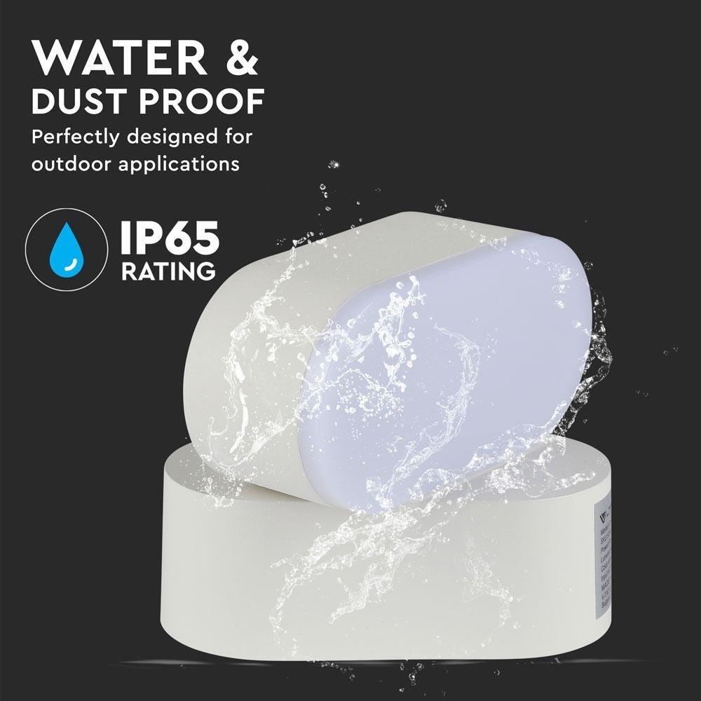V-Tac 6W LED Hvid Væglampe - Oval, Roterbar 350 Grader, IP65 Udendørs, 230V, Inkl. Lyskilde