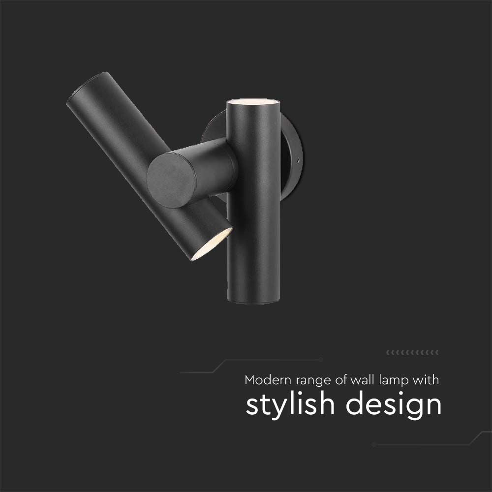 2-vejs spot væglampe med LED-modul, 600lm, 4000K, sort, IP44, 6W, 620lm
