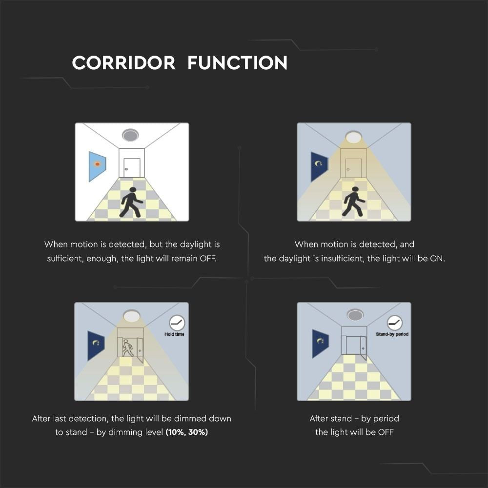 V-Tac 15W LED loftslampe med mikrobølgesensor, skumringssensor og vågelys, IP65, inkl. lyskilde
