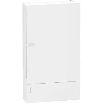 Afdækning, MiniPragma, hvid Beregnet til montering udvendigt på væg. En komplet gruppetavle med 3 rækker med plads til 12 moduler á 18 mm på hver række, 36 moduler i alt. Mål 268 mm (B) x 478 mm (H) x 102 mm (D).