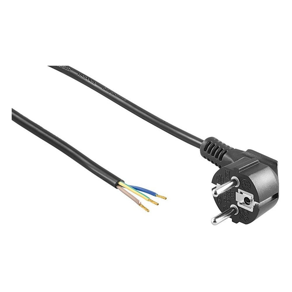 1,5 meter sort strømkabel med Schuko stik og afisolerede ledninger, 250V, 16A, IP20, indendørs brug