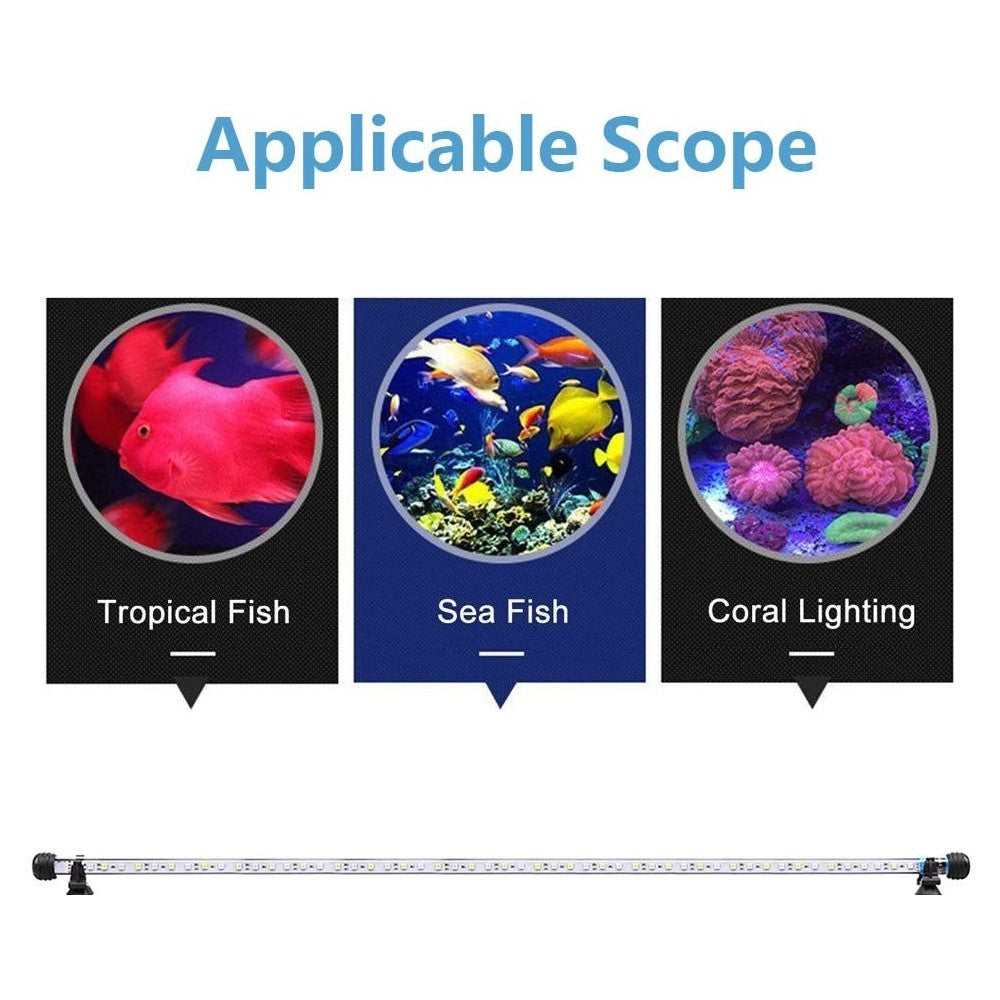 48 cm Akvarie Armatur - 5W LED, Hvid/Blå, Med Sugekopper, IP67 - Effekt: 5W, Input: 230V, 300lm, IP68