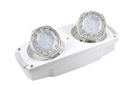 Panikbelysningsarmatur med LED, indbygget batteri og autotest funktion. To lygte hoveder med tilsammen op til 800lm, smalstrålende og bredstrålende optik i samme armatur. Monteres på loft eller væg. Robust konstruktio... Se mere