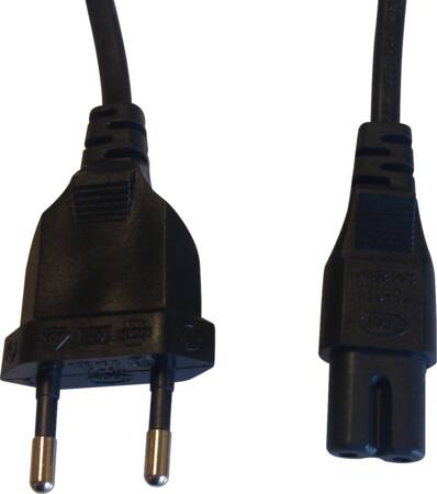 Netledning 1,8 meter Sort, monteret med flad 230V EURO stikprop uden jord og shaver apparatstik. Anvendes til forbindelse af feks. Måleudstyr, og transistorradioer.