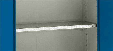 Blika galvaniseret hylde for MS-1, MS-0.5 og olieskab. Bæreevne 60 kg. Udv. mål H:28 B:996 D:382 mm.