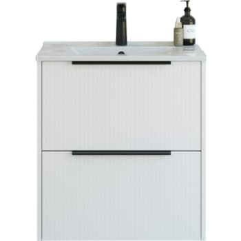 61 cm Mido+ Classic møbelsæt med Amber vask, stribet, hvid mat