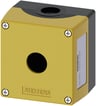 Trykknapkasse 22 mm rund top, gul 1 hul plastik hul i midten tom