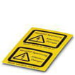 Advarselsskilt, selvklæbende, med sort påtryk: advarselslyn med teksten Vorsicht Spannung - Attention Danger, etiketstørrelse: 32 x 26 mm