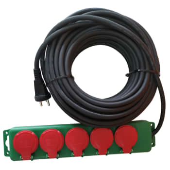 Bandit Kabelsæt 3G1,5 20M m/j med slagfast 5-stikdåse, IP44