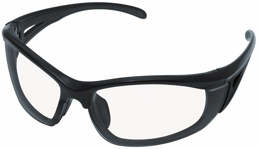 Beskyttelsesbrille med dugbeskyttende belægning, UV-filter og hvælvet glas. Bredde stænger som giver større beskyttelse ved stænk udefra. Blød og ventileret næseklemme af silikone.