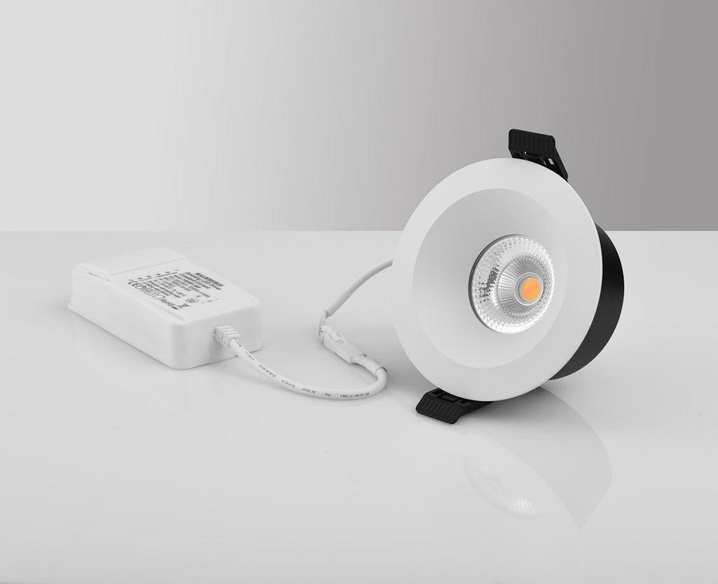 Farvetemperaturen bliver varmere, når man dæmper lyset. Til indbygning. Tilsluttes til skrueløse sløjfeklemmer for L, N og jord. Fast. Armaturet er godkendt til montering direkte mod isolering. Komplet med driver. Dæmpbar med bagkantsstyret transistordæmper (CR).