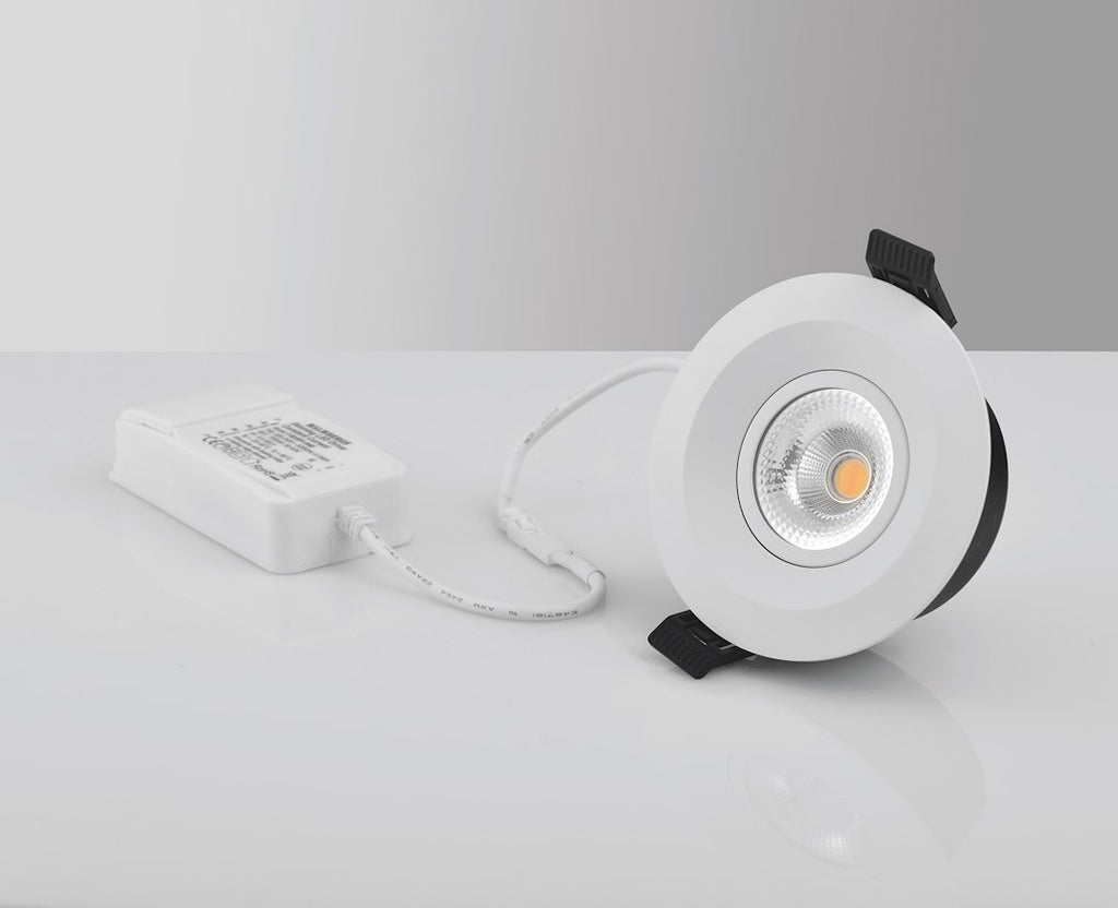 Farvetemperaturen bliver varmere, når man dæmper lyset. Til indbygning. Tilsluttes til skrueløse sløjfeklemmer for L, N og jord. Vipbar 25°. Armaturet er godkendt til montering direkte mod isolering. Komplet med driver. Dæmpbar med bagkantsstyret transistordæmper (CR).