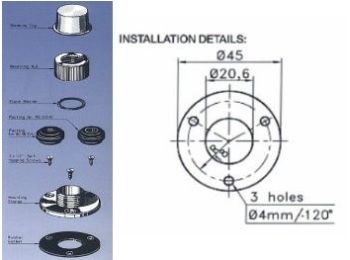This deck feed-through is mainly designed for use on pleasure crafts, yachts etc. where the mast is dismounted when the vessel is hoisted on land for service or for winter storage.