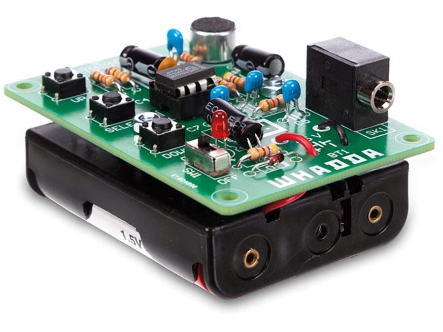 Transform your voice to sound like a real-life robot, alien or other odd beast. This kit is perfect for cosplay or theatre. Adjust the distortion effect and use the 'pitch' buttons to make your voice sound lower or higher.