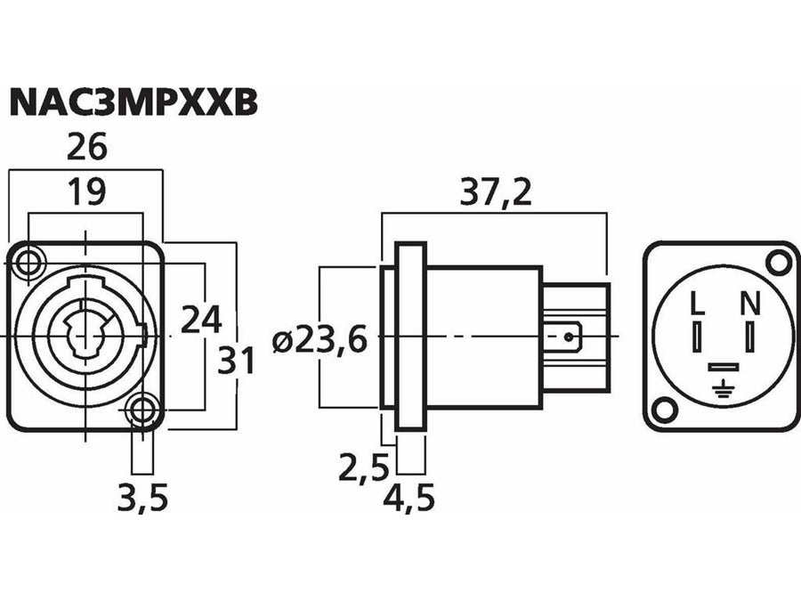Tekniske detaljer: Producent (varemærke): NEUTRIK Stiktype: PowerCON (grå) Mekanisk montage: Panel Elektrisk montage: Loddeben Specifications: Manufacturer: NEUTRIK Connector type: PowerCON ... Se mere