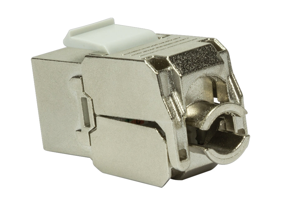 Skærmet CAT6A keystone konnektor. Monteres uden brug af værktøj. Snap-in-Jack for nem og hurtig installation. Kortere end traditionelle CAT7 konnektorer og passer derfor ind i danske udtag.