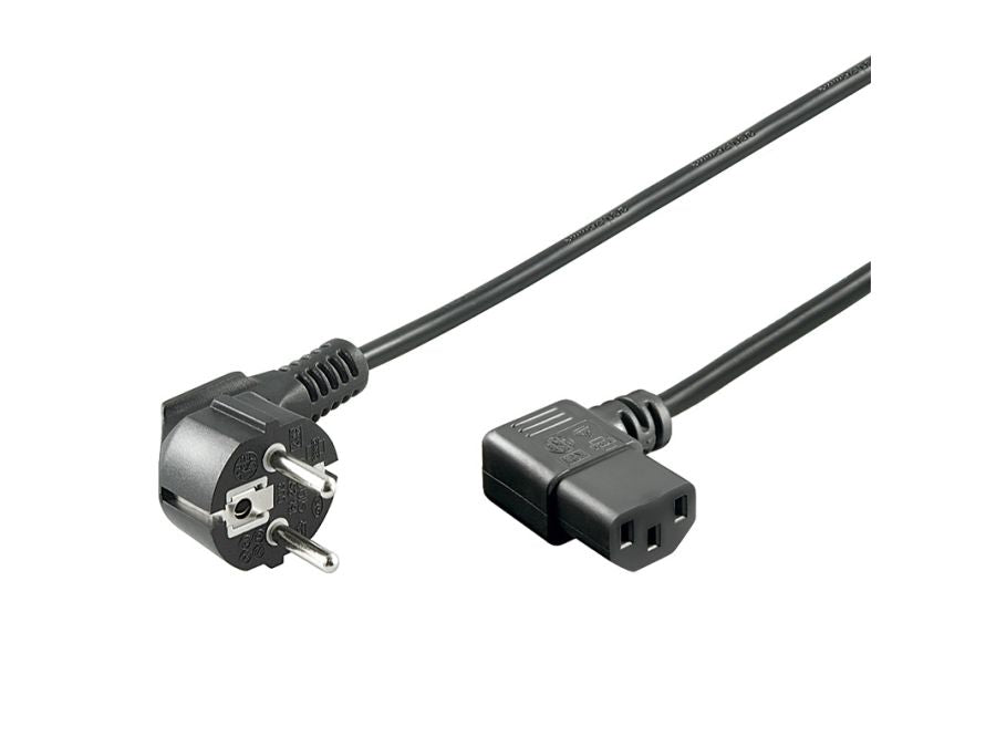- Connectors: CEE7/7 plug 90° angled to C13 device socket 90° angled