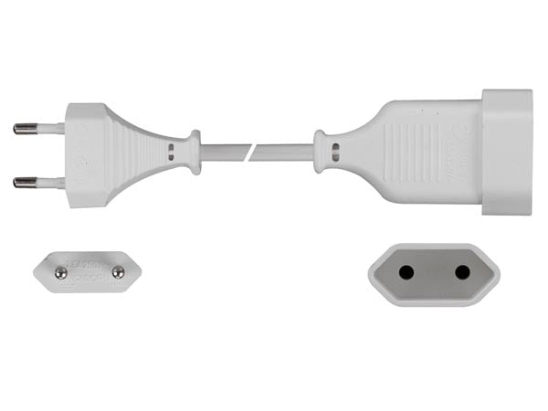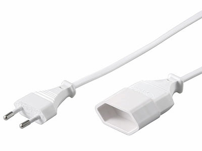 Strømkabel - Euro han til Euro hun, Hvid (2m)