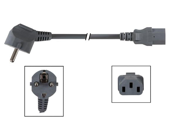 Strømkabel - CEE7/7 90° > C13 (3pol AC hun) Sort (2m)