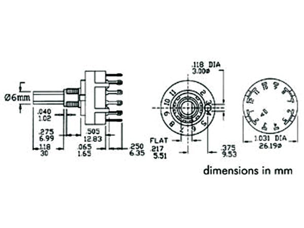 Drejeomskifter - 1pol / 12 stillinger, printben