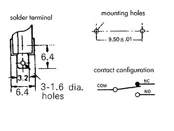 Mikroswitch m. kort rullebolt arm - 3A/250V, ON-(ON), lodde