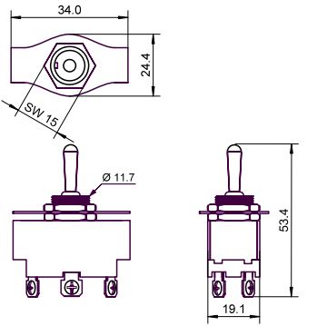 Tekniske detaljer: Type kontakt: Vippe (toggle) Antal positioner: 3 Antal stabile positioner: 3 Skiftemetode : ON-OFF-ON Kontaktkonfiguration : DP3T Maks. AC kontaktstrøm (ved resistiv belastning... Se mere