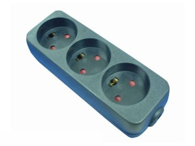 Sort 3-stikdåse m. DK jord, til ledningsmontage. Tekniske detaljer: Udtagstype: DK med jord (type K) Antal udtag: 3 Mærkespænding: 250Vac Mærkestrøm: 10A Farve: Sort