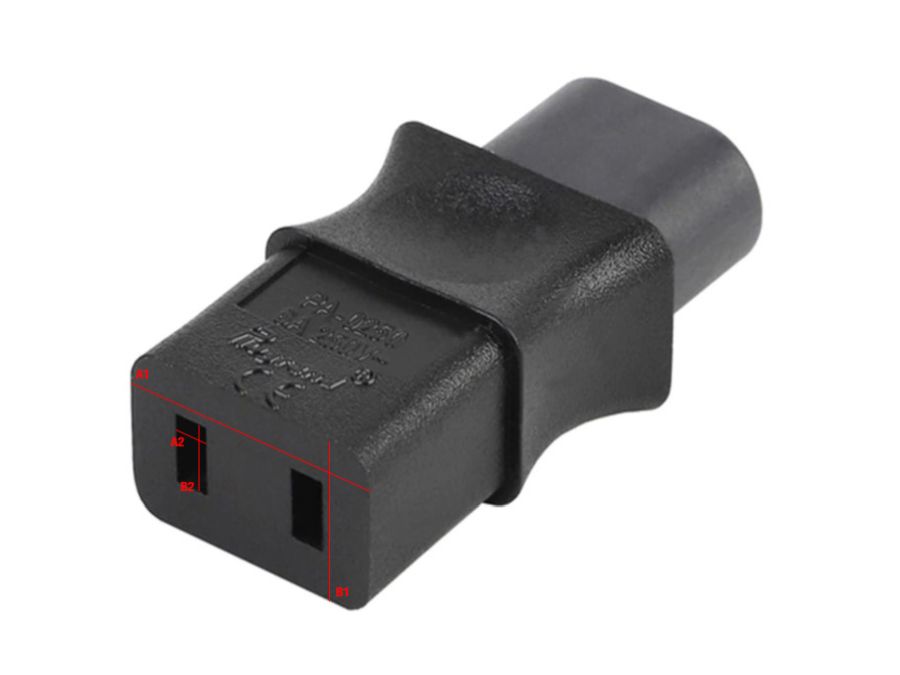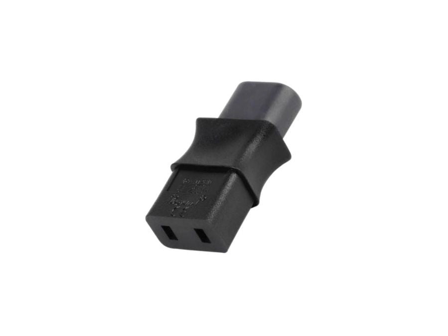 Strømadapter fra IEC-320-C9 til IEC-320-C8. Med denne adapter kan du slutte et strømkabel med et C7-stik (se tilbehør) til enheder, der kræver et C9 stik. Passer til bl.a. Marantz, Revox, og Roland keyboards.