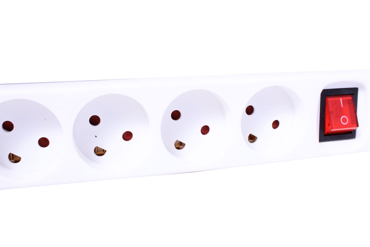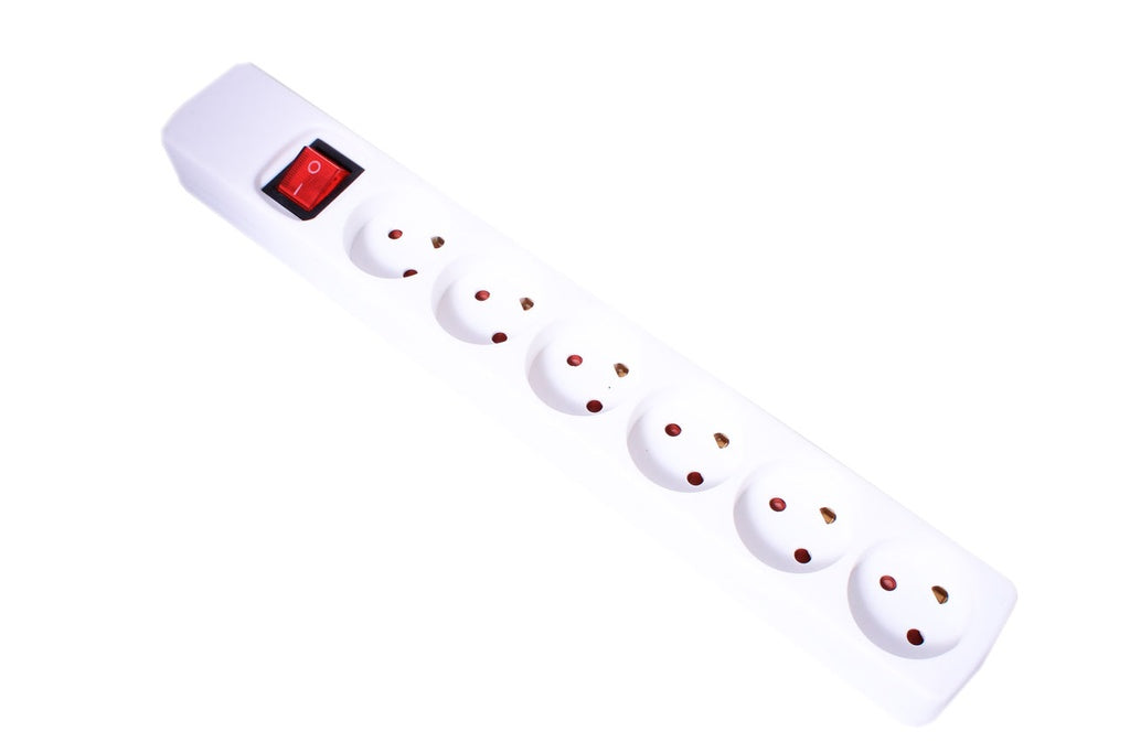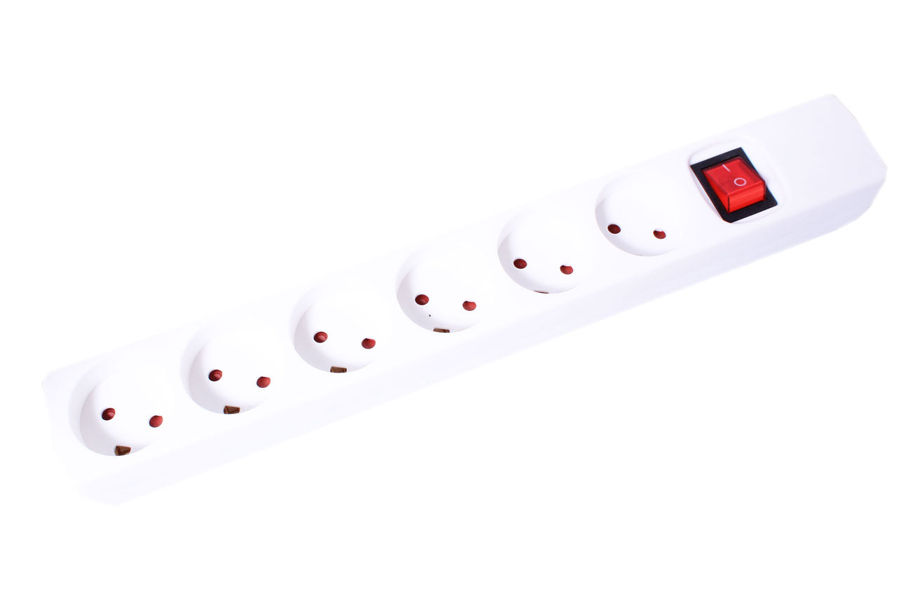 Stikdåse - 6 x DK jord m. afbryder, Hvid (u. ledning)