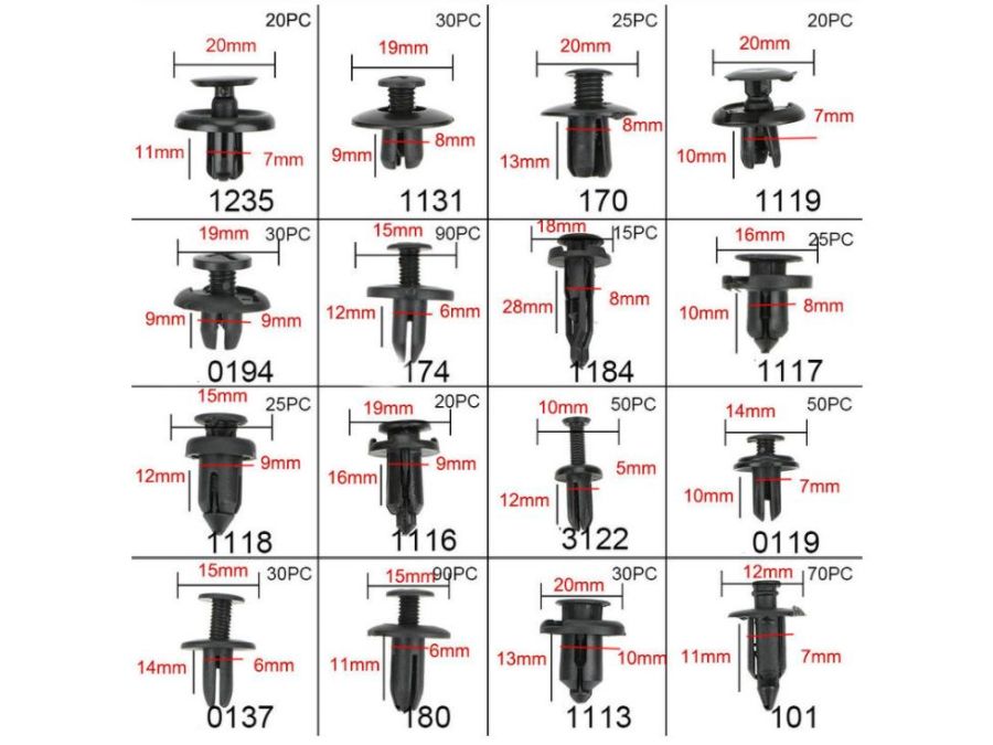 Also known as: Car Retainer Clips / Plastic Fasteners / Fender Rivet Clips / Auto Bumper Rivet Retainer.