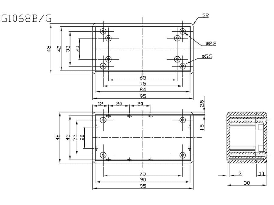 Denne plastikboks giver fremragende værdi for pengene og fås i flere størrelser. Den er støbt i slagfast ABS, og har printmonteringsriller med afstand på 20mm imellem for at tillade fleksibilitet i afstanden mellem komponenterne eller rumdeling. Rillerne accepterer kort med maksimal tykkelse på 1,6 mm.