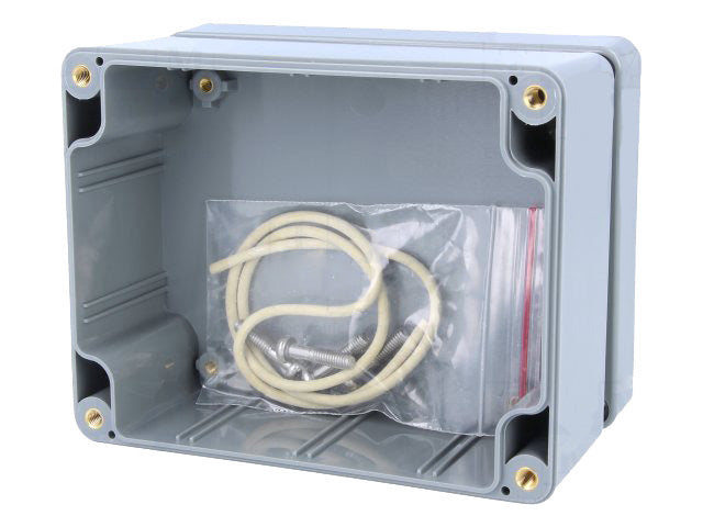 - The bosses on the internal base allow the horizontal fixing of PCB's or the connection of terminals, etc. with threaded brass inserts.