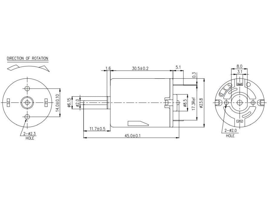 Mini DC motor - 2,5-6Vdc / 250mA 14500rpm