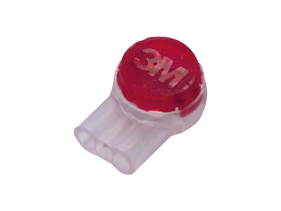 Scotchlok klemmekonnektor (IDC), Rød med forsejlingsgel. Til fugtbeskyttet samling af 3 ledninger. Indsæt blot ledningerne uden afisolere og tryk konnektoren sammen med håndkraft eller ved brug af tang (se tilbehør).