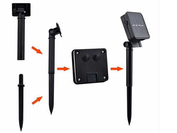Udendørs LED lyskæde med vandtæt solcelle- og batterimodul. Lader op om dagen og lyser om natten! 100 varm hvide LEDs på 12 meter. Solcellen kan monteres på medfølgende jordspyd. Indbygget lyssensor sørger for at lyskæden automatisk tændes når det bliver mørkt (<10 lux). To lysindstillinger: blink eller konstant lys. Op til 8 timers lystid efter fuld opladning.