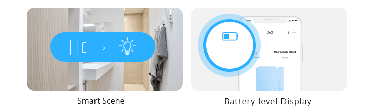 Whether your door or window is opened or closed, you can check real-time opening and closing status in the eWeLink APP. Real-time battery level display and low-battery reminder ensure you know how long the sensor can run and when you need to replace batteries. With simple peel and stick installation, it is easy to fit it in door frames and window sills.