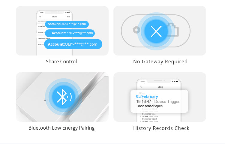 Uanset om din dør eller dit vindue åbnes eller lukkes, kan du kontrollere status for åbning og lukning i realtid i eWeLink appen. Display i realtid på batteriniveau og påmindelse om lavt batteri sikrer, at du ved, hvor længe sensoren kan køre, og hvornår du skal udskifte batterier. Med enkel dobbelklæbende tape installation er det let at montere i dør- og vindueskarme.