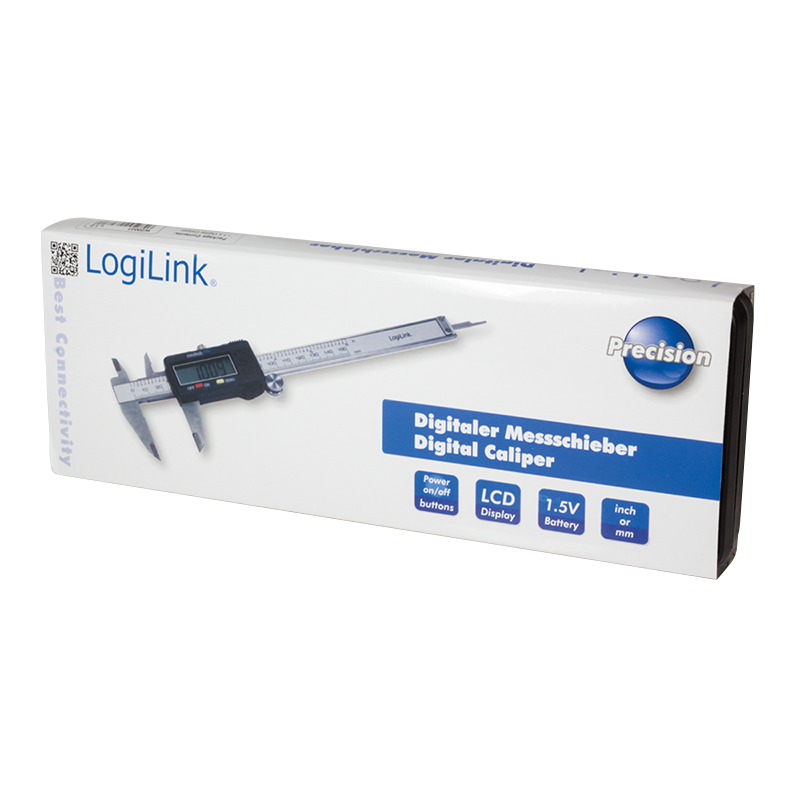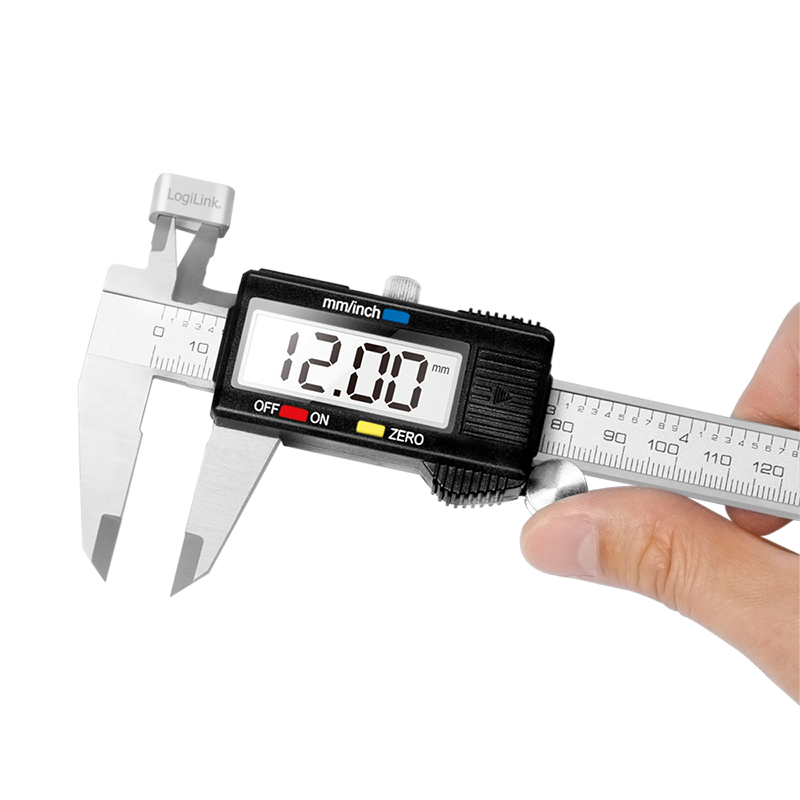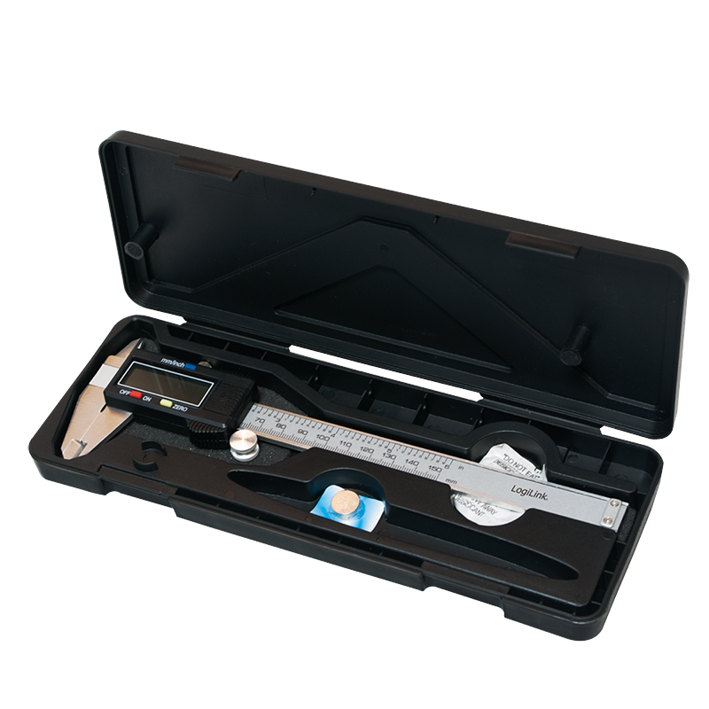 Super præcis skydelære. Måler op til 150mm med en opløsning på 0,01mm. Udlæsning på en 5-ciffer LCD skærm i mm eller tommer. Leveres inkl. batterier og plast opbevaringsboks.