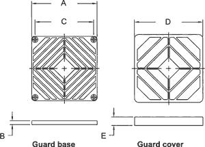 Tekniske data: Producent: RICHCO Type: ventilator tilbehør beskyttelse Ventilatormål: 80x80mm Materiale: plast Montering: skrue A dimension: 81 mm B dimension: 5,6 mm D-dimension: 86mm E dim... Se mere